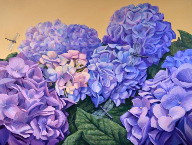 Dragonflies and Hydrangea - 40 x 30