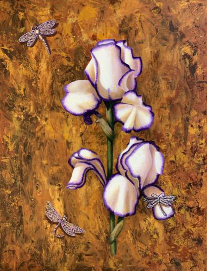 Iris and Dragonflies - 30 x 40