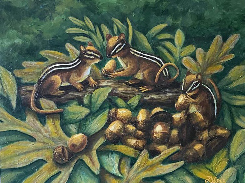 Chipmunk Feast - 12 x 9 SOLD