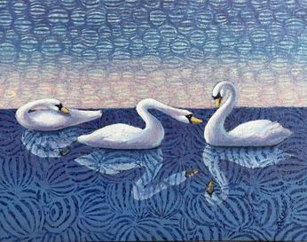 Swans a swimming - 11 x 14